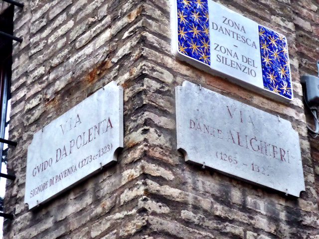 My dear friend Frederica Mathewes-Green and her husband Fr. Gregory are on a tour of Italy now, to celebrate their 40th anniversary. She sent the above photo from Ravenna, taken today, on the streetcorner near Dante’s sepulchre. She wrote, “I prayed for you today in front of Dante’s tomb.” Here she is standing at the entrance: