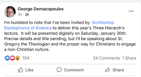 Prof. Demacopoulos is a Fordham professor, a leader in the Mainline-Protestant wing of American Orthodoxy, and one of the people trying to get me disinvited by the seminary on grounds that I am neither academic nor cleric, and that I am somehow demeaning the lecture by being political (my lecture will not be political). No time has yet been announced for Demacopoulos’s just-announced lecture, but — surprise! — I imagine it will coincide with mine. Seems to me like a cheap stunt by people who are outraged that they can’t control the Orthodox narrative, but given that I didn’t expect that the Orthodox Left would fork over the money to listen to my talk, I suppose it’s good that they will have something to do with their time on that day. Interested observers of American religious culture will see rival visions of Christian engagement on display that day, from two Orthodox commenters. I’m biased, of course, but if you listen to my lecture, you will hear something about a vital future for Orthodoxy in America; the other guy will be talking about a way for the Orthodox Church to manage a decline into senescent respectability.