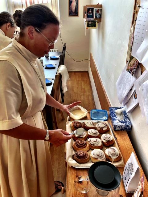 I had a couple of meals with the sisters. We talked about faith, and our lives. Most of them teach in a local Catholic school. There’s one American sister among them, Sister Mary Nichole Nietzel, from Muscatine, Iowa. She’s a cook, and we had a fine time talking about kitchen things. She baked homemade cinnamon rolls for us:
